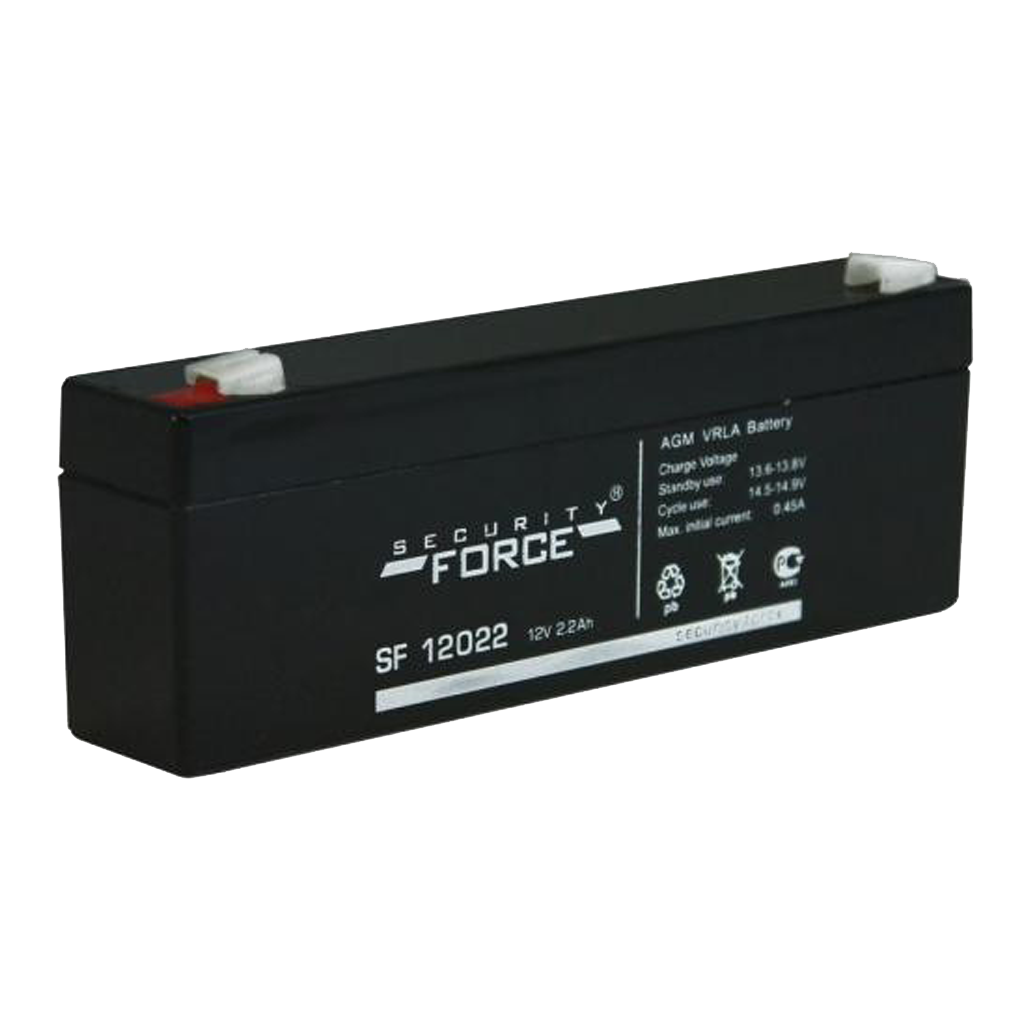 Аккумулятор SF 12022, Security Force, стационарный свинцово-кислотный, Емкость аккумулятора: 2,2 Ач, Номинальное напряжение: 12 В, Хранение: -20... 50°C, Заряд: -10... 50°C, Разряд: -15... 50°C, Размеры: 178х35х67 мм