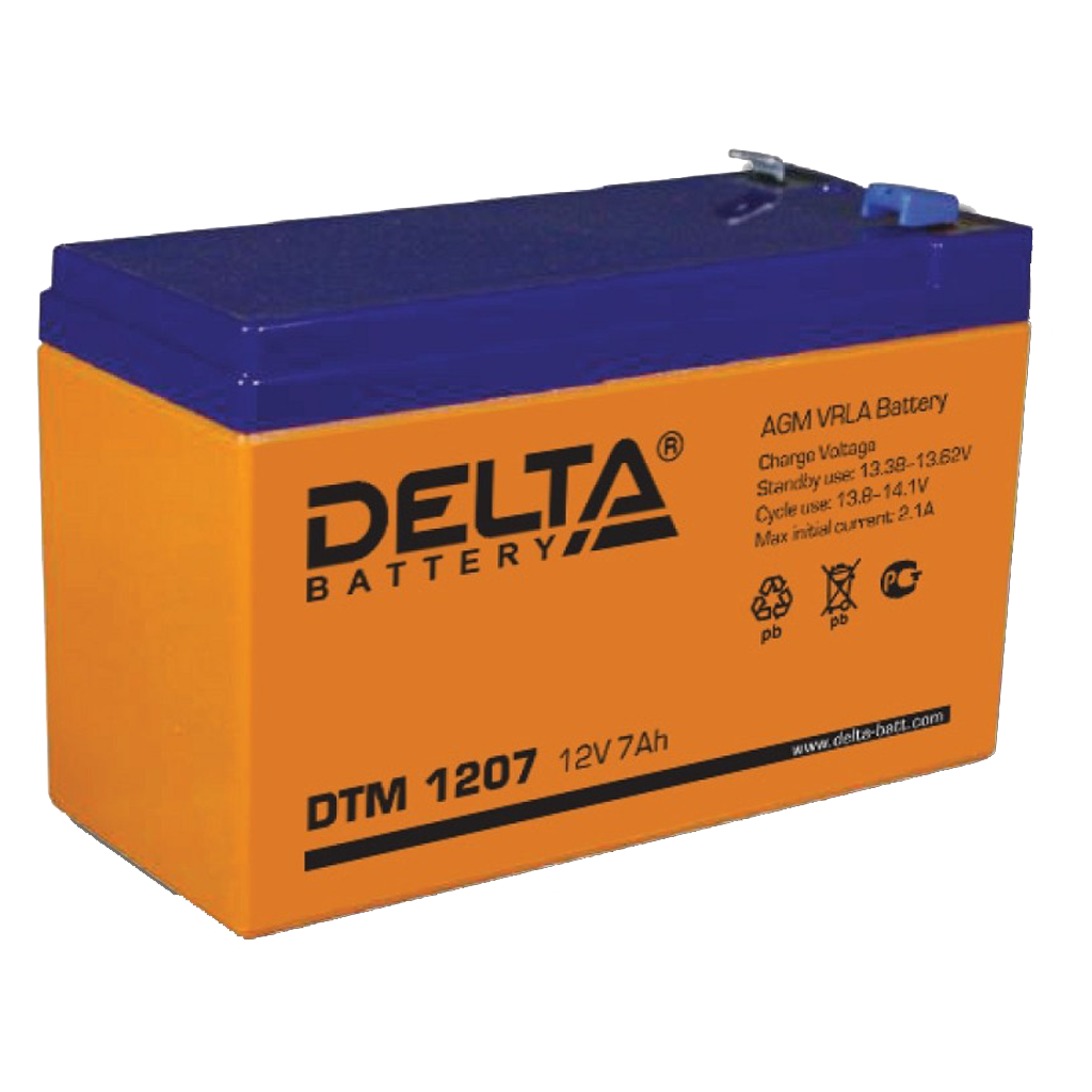 Аккумулятор DTM 1207, Delta, герметичный свинцово-кислотный Оранжевый , Емкость аккумулятора: 7,2 Ач, Номинальное напряжение: 12 В, Хранение: -20… 60°С, Заряд: -10… 60°С, Разряд: -20… 60°С, Размеры: 151х65х94 мм