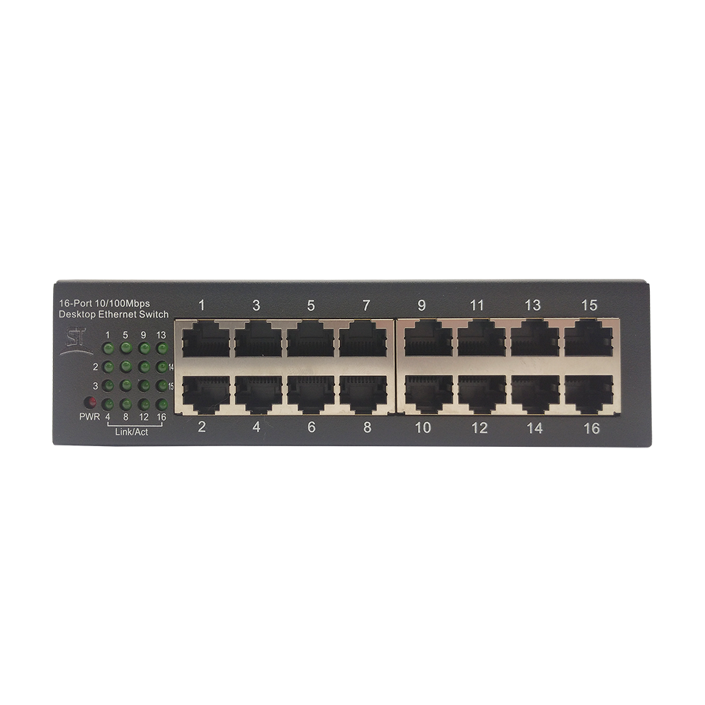 ST-ES161M Cетевой 16-ти портовый коммутатор,обеспечивает подключение сетевых клиентов со скоростью до 100 Мб/с.Имеет широкий диапазон питающих напряжений - от 5 до 13 Вольт, что позволяет применять его для решения различных задач при организации систем видеонаблюдения, Ethernet порты: 16х 10/100Мбит/с , Max.пропускная сп-ть: 100 Мбит/канал, Uпит В : 5...13В ±10% , Стандарт сети: IEEE802.3u,IEEE802.3x,IEEE802.3ab, Скорость фильтрации/передачи пакетов: 10BASE-TX:14880 пакетов в сек./порт,100BASE-TX:148800 пакетов в сек./порт, Коммутационная способность: 3,2Гбит/с, Металл, От 0°C до 40°C, 160х80х40 мм